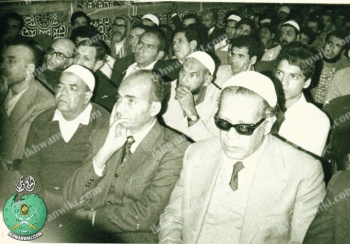 ويرى الأستاذ محمد عبد المنعم يجلس وسط إخوانه في احد المؤتمرات.