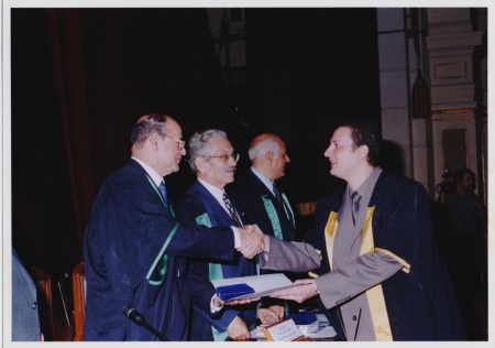 وفي هذه الصورة يرى تكرم الدكتور باسم عودة من أعمدة الجامعة الكبار على تفوقه في السنة النهائية بكلية الهندسة.