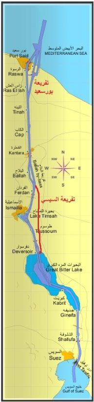 جنوبها كانت بحيرة التمساح وتدل المصادر التاريخية والدراسات الجيولوجية إن بحيرة التمساح كانت تشغل مساحة من منطقة الشيخ حنيدق جنوب الإسماعيلية حتى منطقة نمرة 6 وتمتد للغرب حتى أبو صوير حيث كانت مدينة تكو او سكوت (تل المسخوطة حاليا ) لها ميناء على تلك البحيرة، غير أنها اختفت بسبب التغيرات المناخية وانحسار مياه البحر عنها (1).
