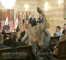أخيرًا اقترح أن يكون يوم 14 ديسمبر يوم الحذاء العالمي، وأن يُباع هذا الحذاء الذي رُجِمَ به الرئيس بوش في مزادٍ علني، وسترون كيف سيصوت العالم لهذا الحذاء في مواجهةِ ظلم الرؤساء!.