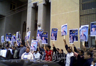 عشرات يرفعون صور د. محمد الجزار أمام المحكمة